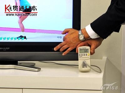 用手挡住感应器使电视认为环境光线很暗,此时通过背光调节达到了32W的低功耗 另外,夏普DE5系列节能液晶电视不仅仅是面板部分作出了节能改良,其还通过亮度传感器进行动态的节能调整,例如夜晚关掉灯后,电视机会根据环境光线降低电视的亮度,同时达到舒适柔和的观看以及节能的目的,通过此方法最高可以使电视功耗减半。 |