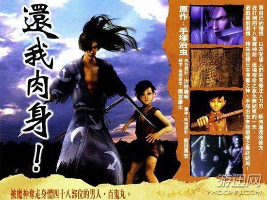 多罗罗 本作以1969年手冢治虫的漫画原作改编,讲述了一个因为被父亲献祭给48个魔神导致出生之后身体残缺48处的百鬼丸,在遇到盗窃维生的孤儿多罗罗之后,共同走上了讨伐妖怪,夺回自己肉身的重生与复仇旅程。 游戏的画面趋向于《天诛》的风格,人物设定和场景都是日本和风。玩家在控制主角百鬼丸进行各种攻击讨伐的同时,也要在某些特殊剧情控制多罗罗进行探索。随着游戏的进行,当百鬼丸打败更多的魔神,回收更多的身体部位后,各方面的属性和技能都将得到显著提升。