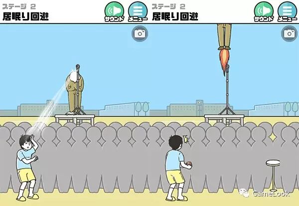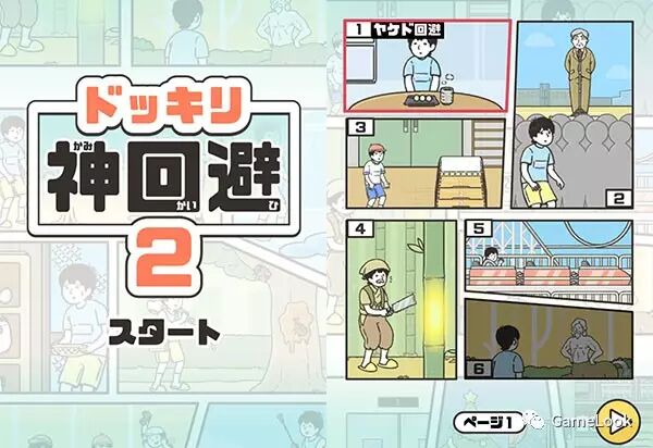 和前作一样,游戏以回避日常生活中隐藏的烦恼(日常に隠されたドッキリを回避しよう)为主题,要求玩家在关卡中做出相应操作过关,是一款轻松的解谜脱出类游戏。既然是脑洞游戏,关卡设计自然不会太过于简单。不同于《布丁被吃掉了》开发商Hap.inc所主打的搞怪加温情路线,《神回避2》开发商G.Gear.inc向来带有更多纯粹的恶趣味,并被玩家冠上有毒之名、亲切地称之为毒厂。 此前G.Gear.inc曾开发多款斗花心女友、回避劈腿抓包的恶趣味游戏,可谓“恶迹斑斑”。 关卡多结局,花样失败才是核心乐趣 游戏只有日文版本,不过此类游戏提示通常都重在画面,类似默剧,所以不懂日文也可以顺畅游戏。游戏有30个关卡,外加1个额外挑战,选关界面以漫画形式呈现,为避免玩家卡关,游戏初始贴心的解锁多个关卡。随着成功过关,会逐渐解锁更多。 早期关卡十分简单,比如第一关的场景,男主小学生自顾自地吃着团子,面前还放着一杯热茶。当然如果不管不顾必定过关失败,男主吃完团子直接喝热茶,便会被烫伤,关卡判定回避失败。正确的做法是在吃团子的过程中从后方冰箱中取出冰块,置入热茶中使之冷却。可以看出,游戏的主旨在第一关到不显山不露水,十分正常地展示了如何回避生活中隐藏的烦恼。 但第二关就画风急转,场景设为小男孩昏昏沉沉地听校长操场讲话。常理认为,玩家应当不断点击瞌睡的小男孩将其唤醒,但在点击一定次数后玩家小男孩还是会忍不住睡去,被凶巴巴赶来的女教师拖走训斥。该关卡过关方式从此处开始奇葩了起来,过关正解为点击校长假发使其脱落,在校长鞠躬时便会由于日光反射过于耀眼而被唤醒。
